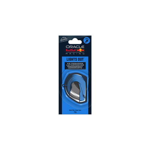 Odświeżacz w kształcie kasku posiada pasek do zamocowania na lusterku. Zapach Lights Out łączy w sobie ciepłe nuty dre wna i skóry z akcentami werbeny cytrynowej oraz paczuli i zapewnia świeżość we wnętrzu samochodu do 40 dni.